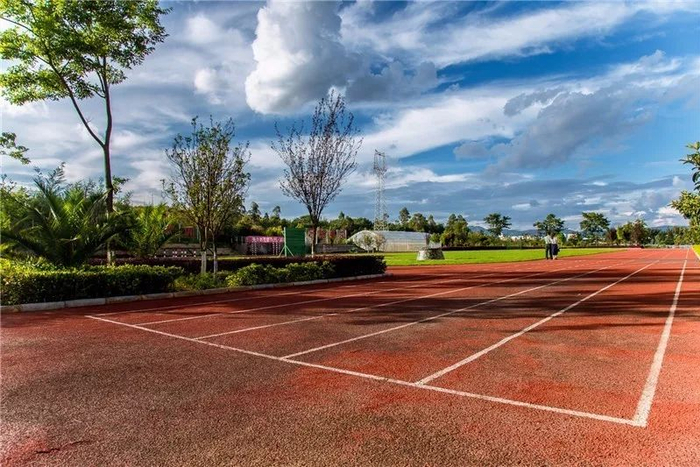 画面首先映入眼帘的便是红色跑道和白色的跑道线,利用直线作为画面的引导,可吸引观赏者的目光。本图中若能沿着构图的直线由下而上看去,将会意外的发现一对热恋中的情侣在散步,以及欣赏远方广阔无垠的蓝天白云。