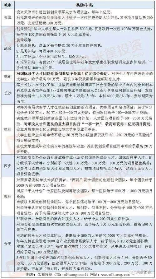 针对高精尖人才更是屡放大招,比如长沙对新进企业博士后工作站的博士后科研人员,给予10万生活补贴。成都、杭州针对高层次人才或顶尖人才都开出了最高1亿的资助。