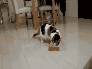 如果没有真正的盒子,在地上划一个角落也是极好的。虽然这只是一个让猫无可奈何的替代品。不论是鞋盒、购物袋、还是地上的一个方块,这些东西都能给猫咪带来开放式空间不能提供的安全感。