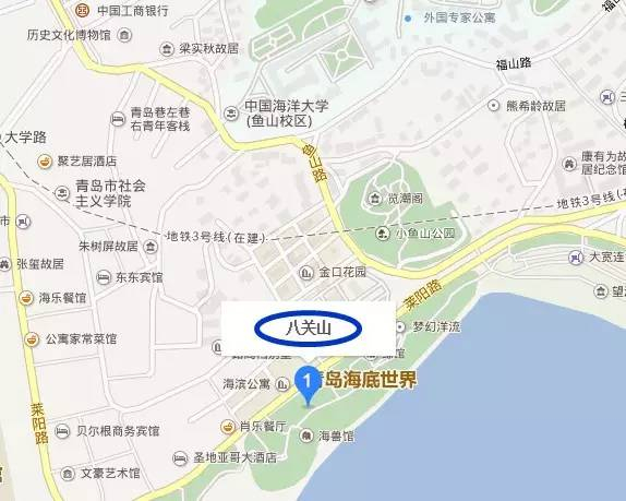 中国海洋大学90周年校庆歌曲《海大颂》中有一句是这样的:“八关山读月,五子顶揽风。”歌词中说的八关山位于小鱼山的北面,海洋大学的东侧。20世纪二、三十年代,这里曾是一批中国现代文学史上著名作家聚集的地方。著名作家、戏剧家洪深的故居就在十字路口上,八关山的山角,一座二层的小楼。通过石阶进入院内,再通过石阶才能进入居室。