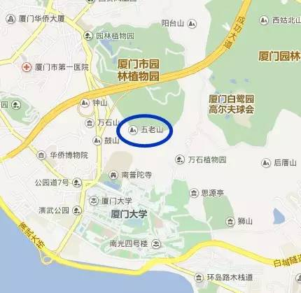 紧邻厦门大学的五老峰,古名为五老山,海拔185米,因为自西向东五座山峰凌空而立,远望如五位老髯面天盘座,丛树若须,云雾似袖,故名“五老凌霄”,是清朝评定厦门八大景之一,也是1997年厦门市评定的厦门名门新二十景之一。