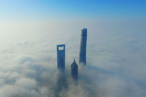 资料图片:大雾中的上海浦东陆家嘴高楼群。(新华社)
