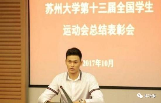 同一天,苏州大学举行第十三届学生运动会总结表彰会,奥运冠军、中国游泳队队长孙杨参加了表彰会,并因在全国学生运动会上打破了大学男子乙组200米、400米自由泳的全国大学生纪录,获得由苏大熊思东校长颁发的“校长特别奖”