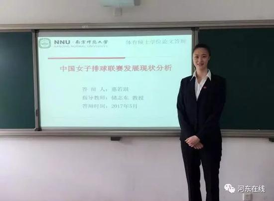 巧的是,惠若琪的硕士论文题目为《中国女子排球联赛发展现状分析》,也属于研究自己。