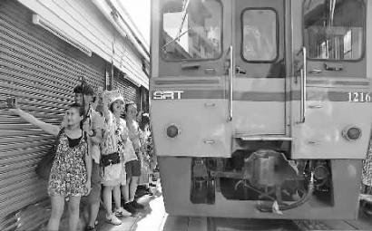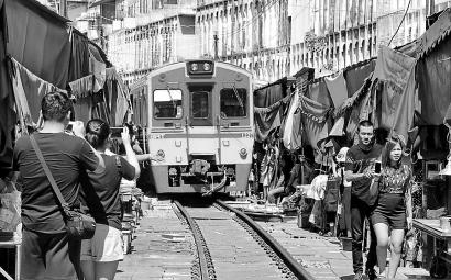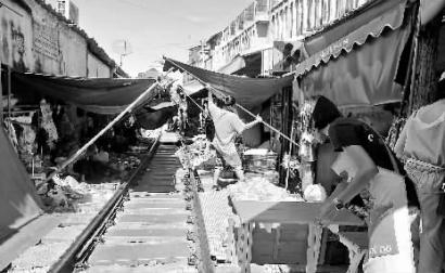 据悉,美功菜市场每天有8列火车经过,但开行多年来,从未出现过交通事故。目前,该菜市场已成为泰国一个知名的市井风情胜地。 (综合)
