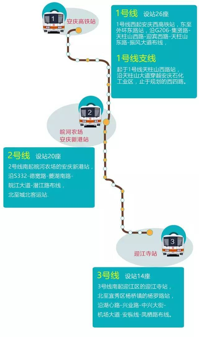 安庆1、2、3号城市轨道交通线路走向、设置站点情况、地下高架占比等情况已明确,计划采取分段建设,或在2018年开建,建设规划年度为2018-2023年。