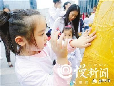 最小志愿者王可欣,跟着志愿者跑前跑后抱纸箱粘纸箱。妈妈说,让女儿从小理解参与公益活动的乐趣和意义。