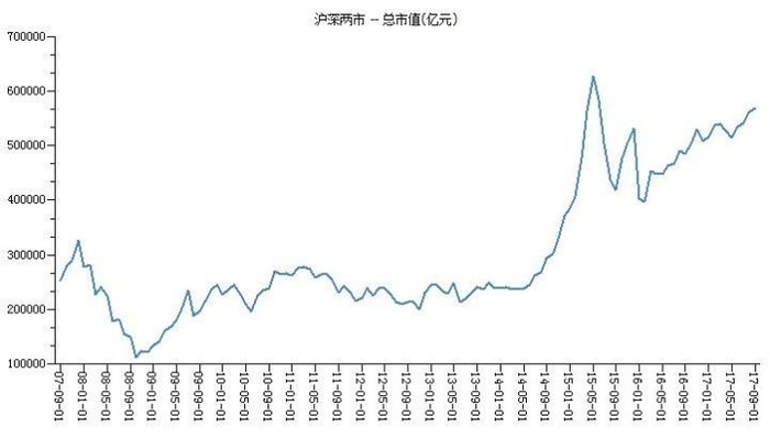 在上市公司总数量明显增加的同时,沪深两市的规模由2007年10月的总股本近1.4万亿股、市值280234亿元,增至2017年9月的总股本5.3万亿股、总市值569300亿元,增长率分别超过250%和100%。