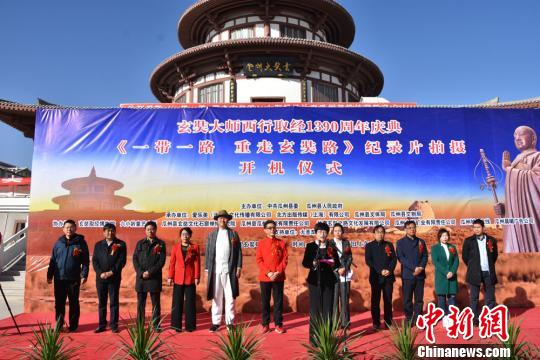 中新网兰州10月16日电 (魏金龙 李娜 俞正芝)玄奘大师西行取经1390周年纪念庆典暨《一带一路 重走玄奘路》纪录片开机仪式15日在甘肃瓜州县玄奘取经博物馆举行。