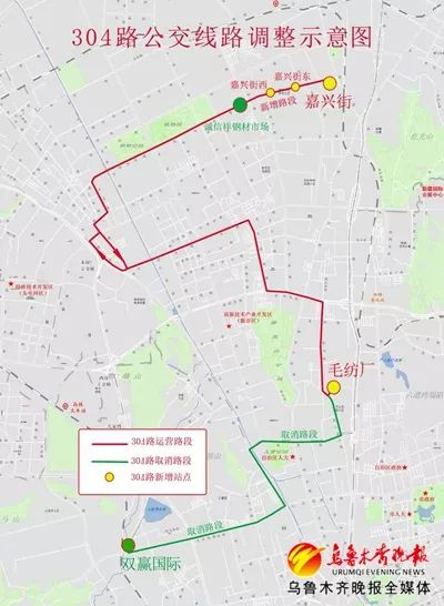 注意啦~10月20日起,乌鲁木齐304路公交车调整线路,取消、增设部分站点