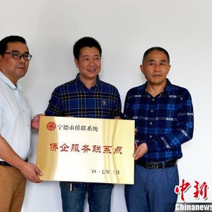 图为宁德市侨联为侨商倪亨代的企业授牌。 张斌 摄