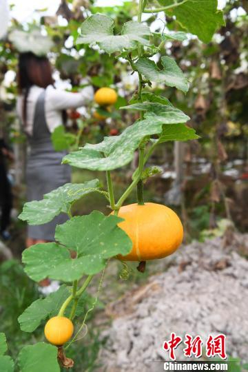 图为倪亨代的观光园内,引进的阿根廷南瓜品种。 张斌 摄