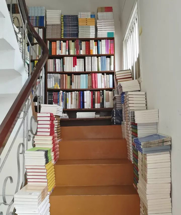 楼梯上也堆满了书