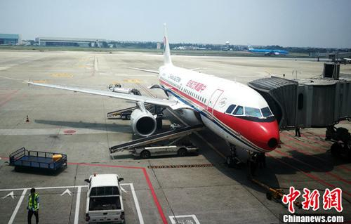 资料图:成都双流国际机场停机坪上正在上客的客机。 中新社记者 刘忠俊 摄