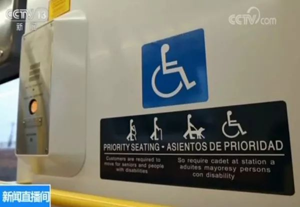 据央视新闻报道,在车厢外还设置了专门为残障人士设计的按钮。残障人士一旦按下此按钮,地铁停车时会伸出约半米左右的踏板,与站台无缝对接,方便残障人士上车。每节车厢内还至少设置了3-4个残障人士专区。