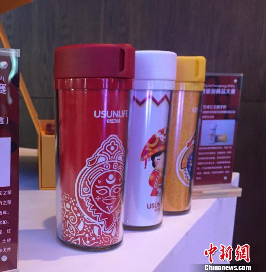 有藏戏脸谱图案的水杯 赵玉芹 摄