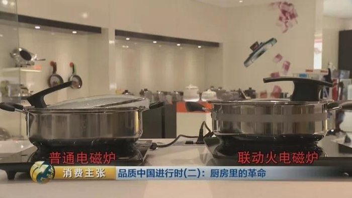 联动火电磁炉是一款即将上市的中国制造的厨房产品,在浙江杭州的这间实验室里,技术人员正对它做最后的检验。两台电磁炉同时煮粥,5分钟后,两个锅都开始沸腾起泡,普通电磁炉上的锅盖开始倾斜,粘稠的白粥从开口处慢慢溢出。而这台联动火电磁炉,却并没有发生这样的情况。