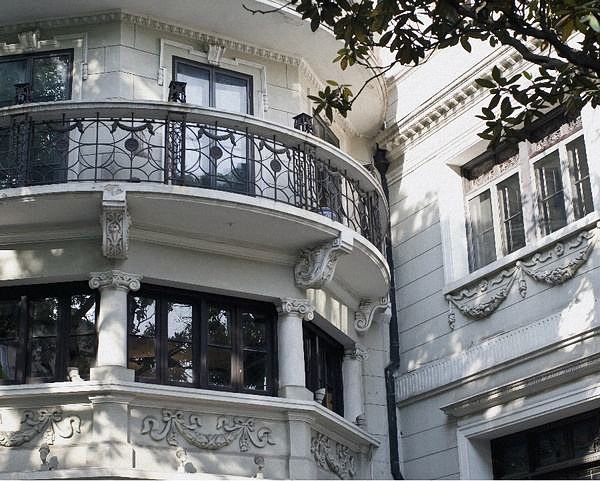 何东公馆以比例严谨、造型优美著称,建筑共有两层,南侧有面积极大的花园。邬达克为这件作品带来了文艺复兴、巴洛克和新艺术主义风格三者杂糅的美感。