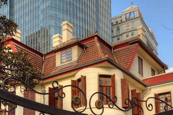 宋家花园与荣宅、何东公馆相距不远的宋家花园,隐匿在神祕的竹篱笆墙后。1918年,宋耀如夫人倪桂珍从外国人手中买下了这座英国乡村风格别墅,宋美龄婚前在此居住了近10年,也就是在这里,完成了与蒋介石的世纪婚礼。别墅为砖木结构,高两层,外墙呈浅黄、砖红,底层可见宽大的敞廊与染色玻璃门窗,二楼曾为倪桂珍、宋美龄、宋子良、宋子安的卧室。花园向南,植被郁郁葱葱,有一棵树龄超过百年的玉兰树以及一条不长的碎石小径连接大铁门与内门的石阶。