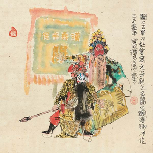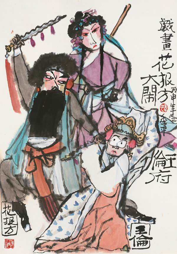 戏曲与绘画,都深深根植于中华文明的沃土,两种国粹艺术跨界结合古已有之,金元时期就有反映杂剧的壁画,陈老莲亦是出类拔萃的“戏画”之人。民国以来,以关良、林风眠为代表的艺术家,独树一帜地在画幅中为戏曲人物留下了主体地位,也正是这个独特的视角开创了中国“戏曲人物画”作为主题绘画的先河。此后,丁衍庸、叶浅予、程十发、高马得、丁立人等诸多艺术家醉心于以戏入画,形成了颇为壮观、风格多样的戏画艺术群落。