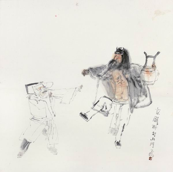 京剧醉打山门,陈心懋,68×68cm,2016,纸本水墨
