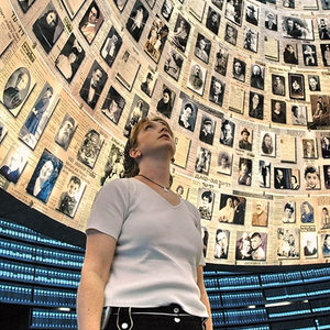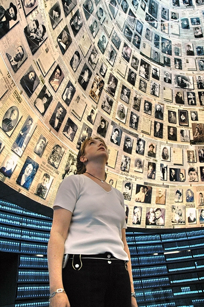 一名女子在犹太人大屠杀纪念馆观看遇难者照片