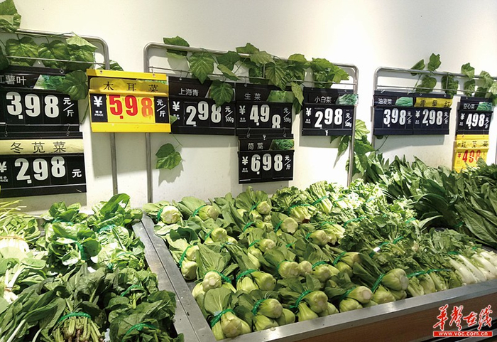10月17日,在长沙伍家岭某大型超市,蔬菜价格涨了,叶类菜涨价尤为明显。记者 陈月红 摄