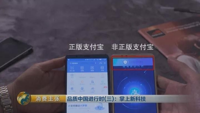 高级软件工程师 曲大伟 介绍,在这一台手机做一些技术处理,把一个友商已经发现、已经捕获的一个非正版的支付宝应用安装到了手机里。非正版支付宝,当点开这个应用的时候,看到开始进行扫描防护了,扫描过程中会检测到这个是一个非正版的支付宝应用,会弹出提示,提示用户进行立即卸载。当点开正版的支付宝应用的时候,界面是很丰富的,也没有对用户进行打扰的处理,但实际上后台已经默默对它进行了扫描。