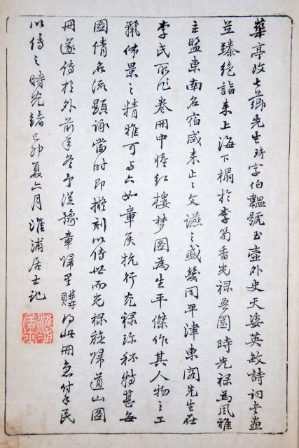 综上所述,可以说没有背后的发起者和赞助者,就没有今天的《红楼梦图咏》。李筠嘉其人,在《海上墨林》中有一段,透露出不少信息:“李筠嘉,字修林,号筍香。例贡生,官光禄寺典簿。工书媚学。家有慈云楼,藏书数万卷。有别业在城西南隅,曰吾园。后改龙门书院。科举停,又改江苏省立第一师范学校。沪道李味庄观察招致名流,宴集其中,觞咏之盛,为海上冠。朋友投赠篇什。刻为一编曰《香雪集》。” 另有陕西人民出版社《历代藏书家辞典》中有载:“李筠嘉,清上海人。字修林,号荀香。候选光禄寺 典簿。龚自珍《定庵续集》卷三 ‘上海李氏藏书志序’:‘上海李修林筠嘉藏书甚富。精于校勘,藏书至四千七百种,论议胪注至三十九万言。’室名‘慈云楼’” 。此二处皆提到“慈云楼”。慈云楼是何也?乃李筠嘉之藏书室室名也。藏书巨富,肯定不止龚自珍所称的“四千七百种”,因此数目乃李氏从自己的藏书中挑出四千七百种编为书目。而《海上墨林》称李氏“藏书数万卷”。当时李筠嘉把它收藏的4700种书编为书目,名为《上海李氏藏书志》,对各书的卷数、作者、内容等加以记载和评述,并邀请龚自珍为这部藏书志撰写序文,龚自珍在序中不仅提到了李筠嘉,也系统介绍了中国目录学的源流发展,表达了他对目录之学的厚爱。李筠嘉本人是非常支持出版印刻诗集和画集的。如有一次改琦的亡友褚华(文洲),家贫无子嗣,生前无力出版自己的诗文集,过世后遗稿多散佚。改琦得知这一情况后,有意识地搜罗褚华的诗稿、整理成《宝书堂诗钞》并请求李筠嘉出版,李筠嘉欣然应允,为之出资版行。这在李筠嘉自己的行文中有提到:“云间改七芗见之,属为付梓,因乞姜孺山为之校订” ,又有沈嵩《炼秋室诗稿》所载:“李筍香以所刊文洲《宝书堂集》见寄。文洲无子,诗集几散佚,君宛转得之,力任付梓。”李筠嘉对于陌生之人尚且如此,那么对其门下贵客兼好友的改琦,其画册与诗集的出版也不再话下,并且极为重视。