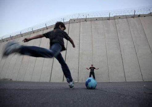 ↑资料图:巴勒斯坦儿童在以色列隔离墙附近玩耍。
