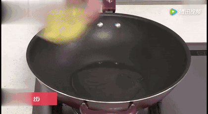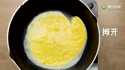 2、热油锅,倒入蛋液,煎至6层熟待用。