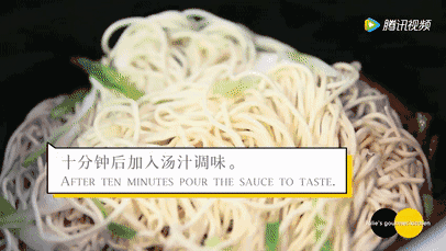 4、加葱花翻炒1—2分钟,将炒好的肉酱铺在过了冷水的面条上,拌匀,开吃!