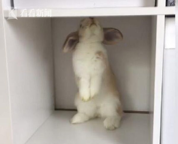 这一次,雨果又像往常一样躲进柜子“思考兔生”,却不小心“倒栽葱”向后翻倒在地。
