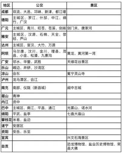 四川省金融IC卡应用与全开放地区一览表