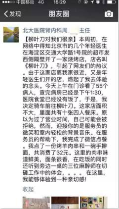 最近一家烧烤店成了网红店:青年医生王建和程丝联合了16位来自北京大学和清华大学毕业的校友,在北京市西直门附近开了一家以“柳叶刀”为名的烧烤店。