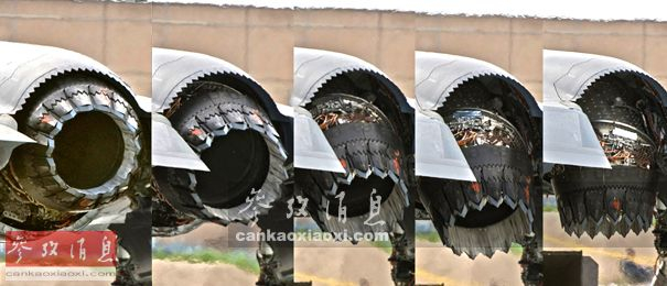 3BSD喷管的作用是将F135涡扇发动机的推力矢量从平飞时的向后变为垂直起降时的向下。这种喷管的优点是能在不改变发动机运行状态的情况下,平滑下折95度,还能在悬停及过渡飞行(悬停与平飞间过渡)状态时进行偏航控制。图中展示了F-35B的3BSD从平飞转为悬停模式的连续镜头。