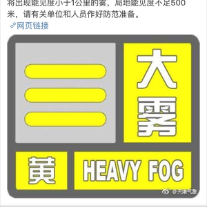 昨晚23时18分,天津气象台发布大雾黄色预警。