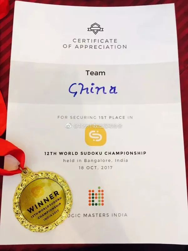 这是中国数独队首次在境外获得的世锦赛冠军。