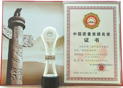 2016年,荣获中国质量领域的最高奖项——中国质量奖提名奖;
