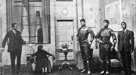到了一个世纪之后(1920年),捷克斯洛伐克作家卡雷尔 • 恰佩克通过《罗素姆的万能机器人(Rossum’s Universal Robots)》将造人科学家的个人悲剧放大为全体人类的末世审判。大众所熟知的“Robot(机器人)”一词便源自于此,词源为捷克语“劳役或苦役”(Robota)及“奴隶或奴仆”(Robotnik)。显而易见,该词隐喻了机器人只能处于服务人类的劳工地位。剧中的智能机器人由工厂批量制造,外表和人类一样。人类为了从日常劳动中解脱出来,大量使用这种机器人。罗素姆工厂的经理们明白无误地讲出了这点:生产机器人就是为了让其替代工人劳动,“一个机器人能顶两个半工人”。后来,机器人不再服从奴役,转而发动战争消灭了人类。与之前作品不同的是,该作最终毁灭的不是个别科学家,而是全人类。导致这一悲剧的关键因素在于牟利资本的介入,而根本原因则是人性本身的弱点。科学家小罗素姆为了赚钱而制造机器人,人类则因为好逸恶劳而广泛使用机器人。从唯一幸存的人物阿尔奎斯特口中,作者表达了人类的忏悔:“为了我们的自私自利,为了利润,为了连我都不明白的什么样的非凡事业,我们把全人类都葬送了!”