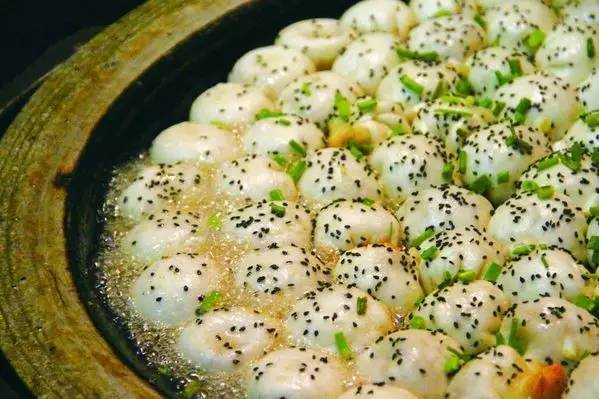 ↑↑↑小胡生煎,咬一口就能飙出汤汁的生煎包~~他家的生煎包不是包子底下受油,而是包子上面,也即是包口,有花纹的地方。包子上面有黑芝麻,既增加了口感,又起到点缀作用。