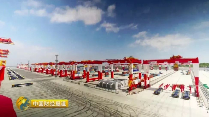 中国港机装备的全球份额已经从五年前的70%,增长到82%。作为重要的战略支点和枢纽,港口是衡量综合国力的重要标志。码头装卸现场,只见吊车和自动化引导小车忙碌,却空无一人。未来这里的生产控制只需要9个人,比传统港口减少70%的人力。码头和堆场就像一个巨大的“棋盘”。