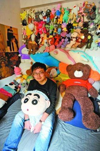 在胡博的家里,记者看到客厅和卧室堆放着不下1000只娃娃,挂满了两面墙。