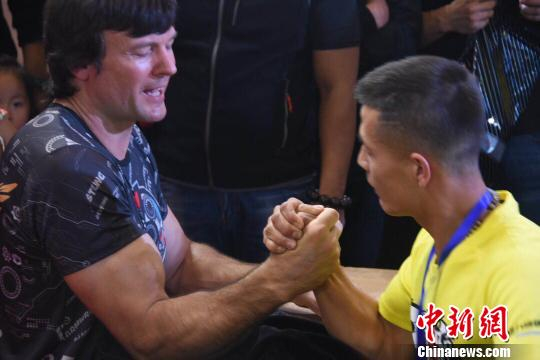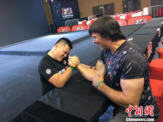 值得一提的是,德文·拉瑞特——加拿大职业斗腕选手、国际腕力大神——出现在当天斗腕比赛的现场。赛后,他与中国的腕力选手进行了车轮大战,比拼切磋。殷乐告诉记者,德文本次来到中国,是为了和中国斗腕选手进行一些技术交流。
