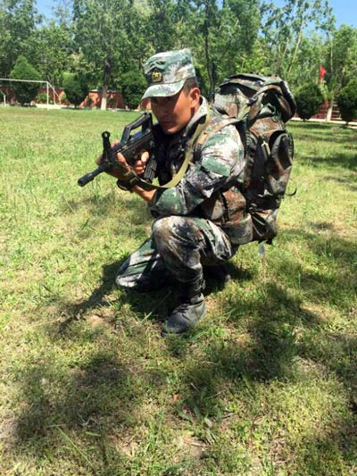 赵金龙记得集训的第一天,他就跑了50个400米。“那可不像平时,还能穿着跑鞋和短裤,我们是全副武装地跑了这么多。”赵金龙说,这还没完,半小时之后是力量训练,一练就是4个小时。当天点评结束时已经是夜里12点多了,赵金龙记得,那天他把“装备一卸、枪一挂,3秒钟不到就睡着了”。