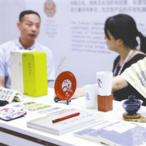 据国际授权业协会统计,中国目前已成为世界第五大授权市场,并保持快速增长。图为今年成都杜甫草堂在全球授权展·中国站展出的以草堂文化为IP开发的文创产品。 视觉中国供图