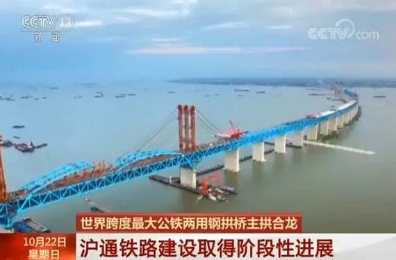 昨日上午,世界跨度最大的公铁两用钢拱桥——沪通长江大桥天生港航道桥主拱顺利合龙。沪通铁路通车后,上海到南通铁路运行时间将由现在的11小时缩短为一个小时左右。