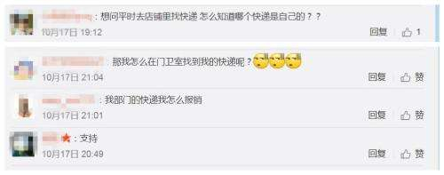 有新浪微博网友调侃称,“关键是一大堆件签收了之后都不知道是谁的快递了”“想问平时去店铺里找快递,怎么知道哪个快递是自己的?”