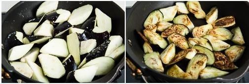 炒茄子的时候,可以先不加油干炒一会儿,这样炒出的茄子更省油也更容易熟。最后加入少许老抽,加盐调味,就是美味的红烧茄子啦~
