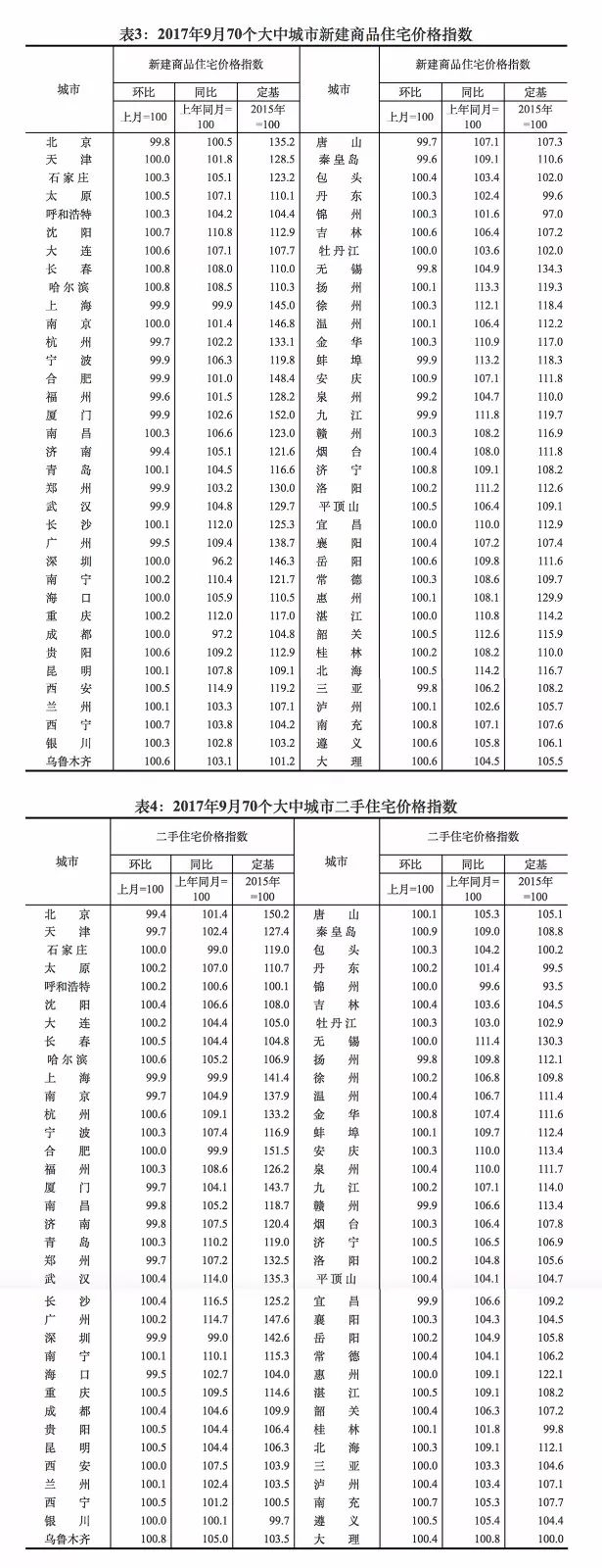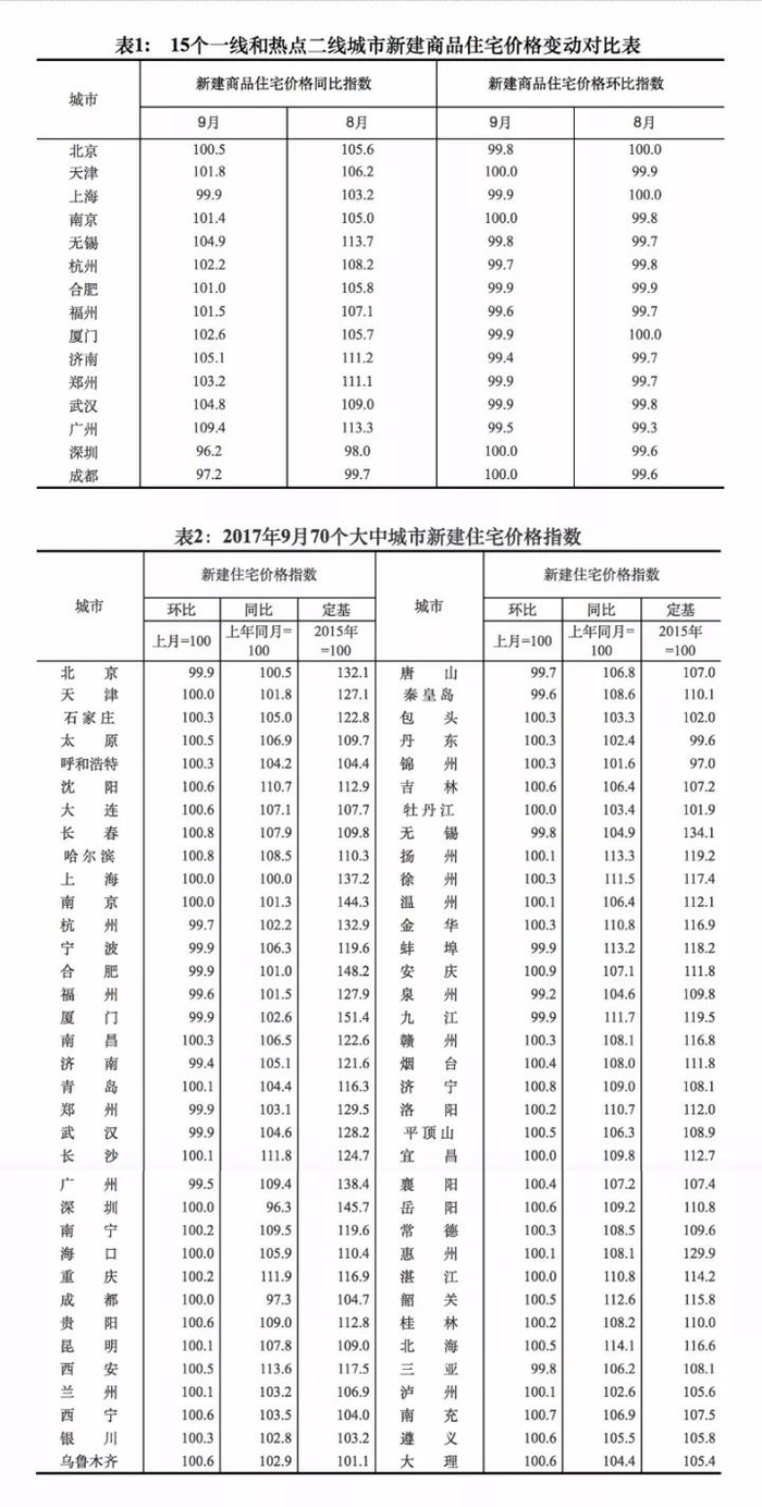 二线城市新建商品住宅价格同比涨幅连续10个月回落,9月份比8月份回落2.2个百分点;二手住宅价格同比涨幅连续8个月回落,9月份比8月份回落1.8个百分点。
